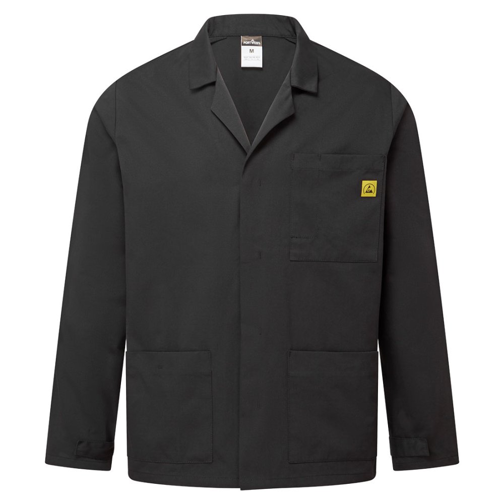 Prirodzene antistatická bunda je ideálna do prostredia, kde sa vyžaduje elektrostatický odpor. Bezpečný a pohodlný odev. Nastaviteľné manžety, zatváranie na cvoky, dve vrecká po stranách a jedno na hrudníku.