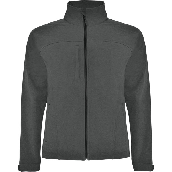 3-vrstvová softshellová bunda s predným zapínaním na zips, vodoodpudivá a odolná voči vetru. Podšitá mikroflísovou látkou. Dve bočné vrecká a jedno vrecko na pravej strane hrudníka so zipsami a lemované rovnakou tkaninou. Ochrana brady z rovnakého materiálu. Vnútorné nastavovacie prvky.