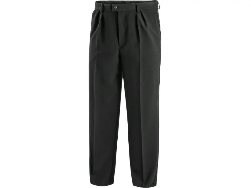 Pánske nohavice pre čašníkov v modernom dizajne, pás s pútkami na opasok, 2 predné vrecká, pravé zadné vrecko na gombík. Odporúčané použitie: čašníci, učni, hotelierstvo.