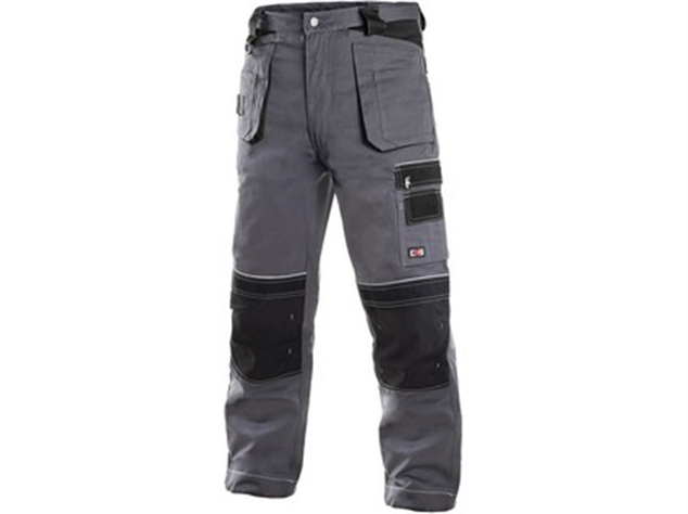Montérkové nohavice do pása sú vybavené reflexnými doplnkami pre lepšiu viditeľnosť a bezpečnosť. Nohavice sú vzadu stiahnuté do gumy, majú pútka na opasok a zosilnené kolená (600D polyester) s možnosťou vloženia kolenných výztuh. Samozrejmosťou sú bočné multifunkčné vrecká, predné vrecká a pútka na náradie.