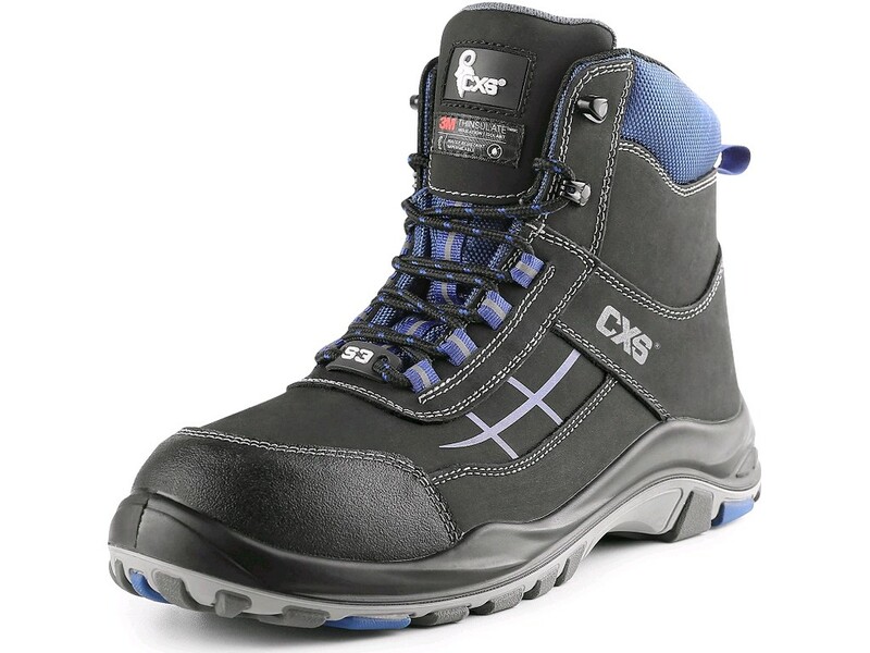 Členková bezpečnostná obuv CXS DOG MALAMUTE S3 zateplená vložkou Thinsulate (gramáž 200 g), s oceľovou špicou a planžetou, reflexné doplnky. Materiál: hydrofóbny zvršok z 1,6 - 1,8 mm kvalitnej štiepkovej nubukovej kože, priedušná oderu odolná mesh podšívka. Podošva: PU-TPU, protišmyková, antistatická, olejovzdorná, odolná proti prepichnutiu. Norma: EN 20345. Veľkosť: 37-48