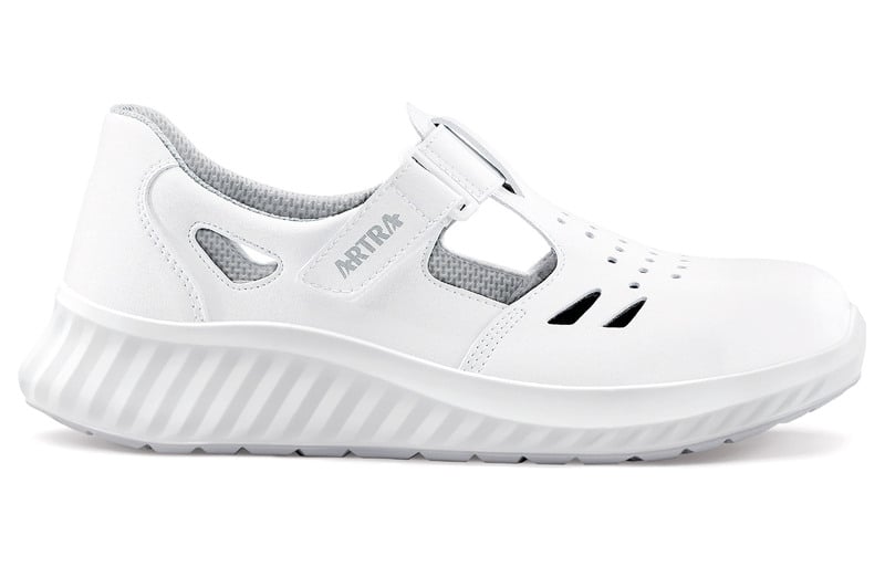 Pracovné sandále Armen O1. Zvršok: mikrovlákno MICRO PRO. Podšívka: TOTAL DRY. Podrážka: RAPTOR PU.2D. Výnimočne ľahké pracovné sandále s perforovaným zvrškom z hydrofóbneho mikrovlákna MICRO PRO 2,2mm ktoré zvyšuje odolnosť a priedušnosť. Podšívka TOTAL DRY pre vynikajúcu úroveň absorpcie a priedušnosť. Stielka EFFECTOR z pamäťovej polyuretánovej peny pre extra vzduchové odpruženie a priedušnosť. RAPTOR PU.2D podrážka s responzívnym tlmením pre vysokú energetickú návratnosť.