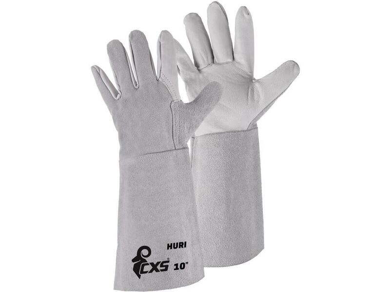 Pracovné rukavice HURI dlhé, sú celokožené zváračské rukavice s tuhou manžetou, chrbát a manžeta rukavice sa skladajú z hovädzinovej štiepenky, a dlaň je tvorená z kozinkovej lícovky, odporúčané použitie: zváranie, zváranie elektrickým oblúkom, brúsenie. Hrúbka: 0.7 mm +/- 0.2 mm Dĺžka manžety: 20 cm Dĺžka rukavice: 36 cm Velkosť: 10 Norma: EN 420 Balenie: 12 párov Kartón: 72 párov