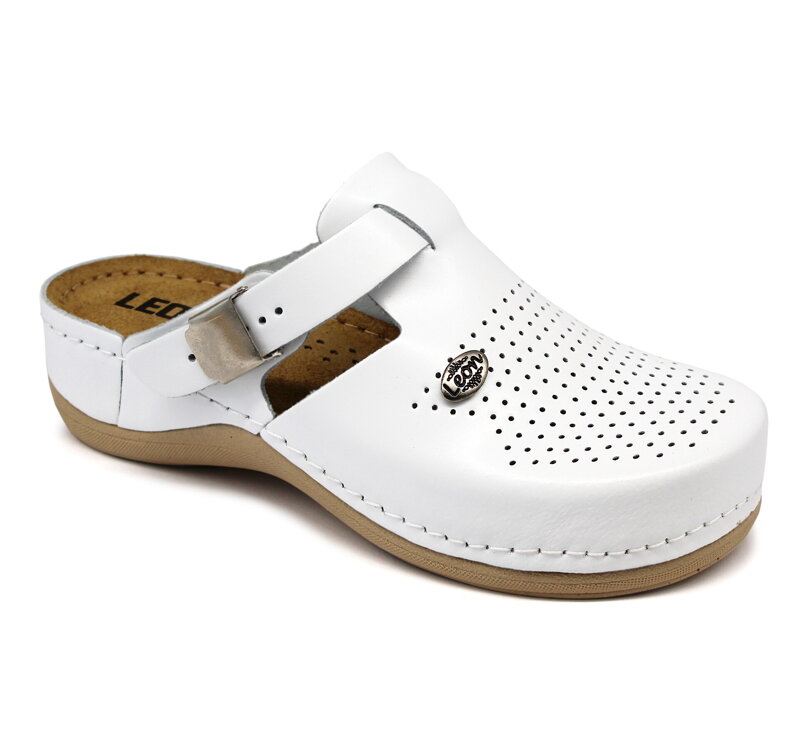 Pracovná biela zdravotná obuv LEON 900 je kvalitná kožená ortopedická obuv, ktorá je zdravotne certifikovaná. Je vhodná nie len pre zdravotníctvo, potravinárstvo a iné odvetvia, ale aj ako moderná zdravá obuv na voľný čas.
