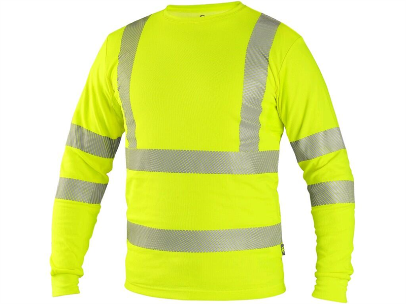 Pánske výstražné tričko CXS OLDHAM s dlhým rukávom, okrúhlym výstrihom, zpevňujúcou krčnou pásikou, bočnými švami, sieťovinou v podpazuší a segmentovanými reflexnými pruhmi: 2 horizontálne, 2 vertikálne (šírka 5 cm). Odporúčané použitie: stavebníctvo, cestári, vodiči, logistika, údržba, bicykle, motocykle, skladovanie. Materiál: Základný materiál: 55 % bavlna, 45 % polyester, Doplňkový materiál: 100 % polyester, 160 g/m2. Veľkosť: S-3XL. Norma: EN 20471.